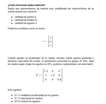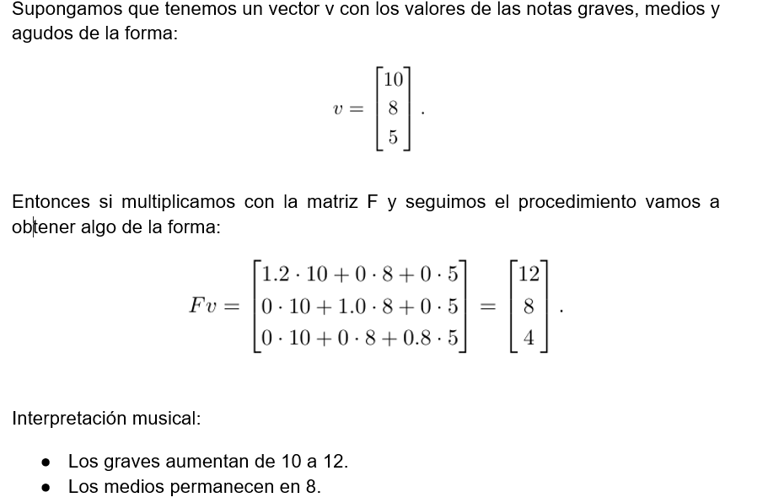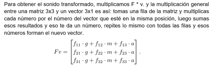 Porque todo lo que un software de música hace como mezclar voces, agregar efectos, ajustar graves, hacer autotune, etc, se basa en transformar esos vectores por medio de matrices.